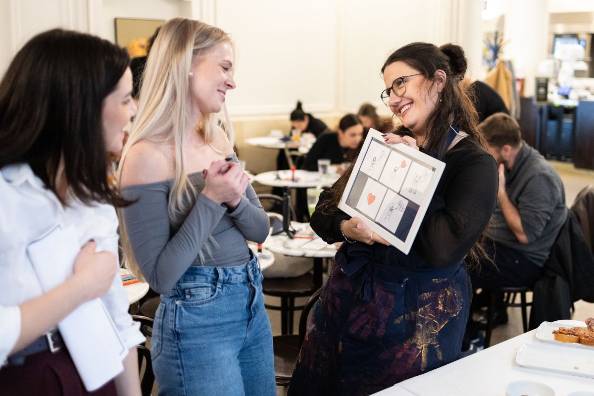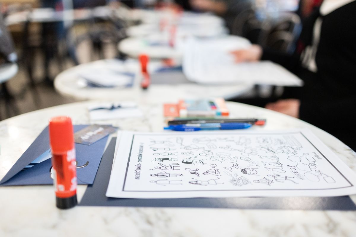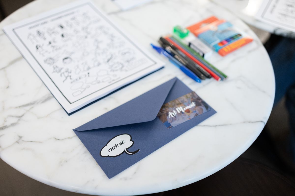 - Dostanete welcome drink, pracovní sadu a krátké uvedení do principů komiksu.