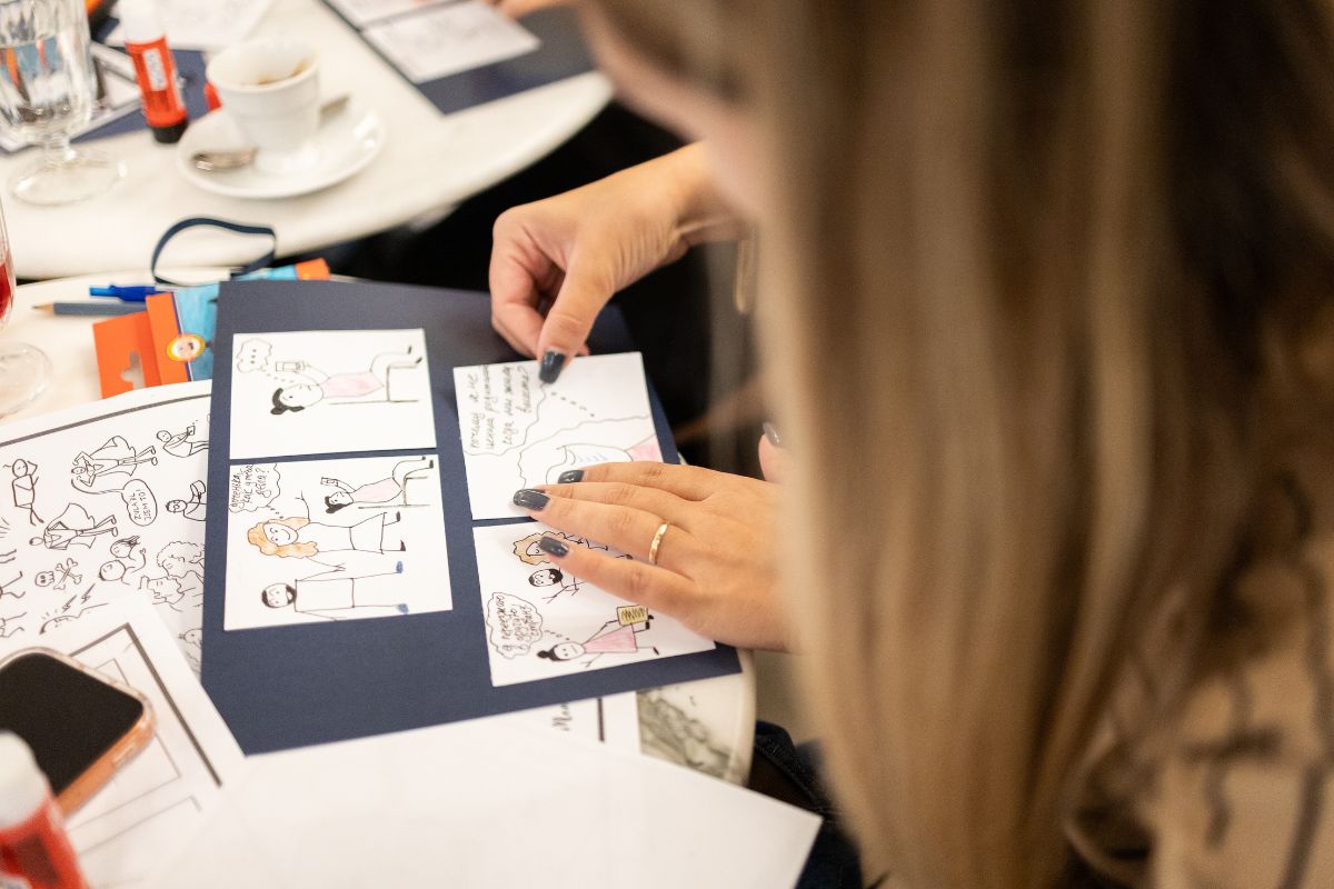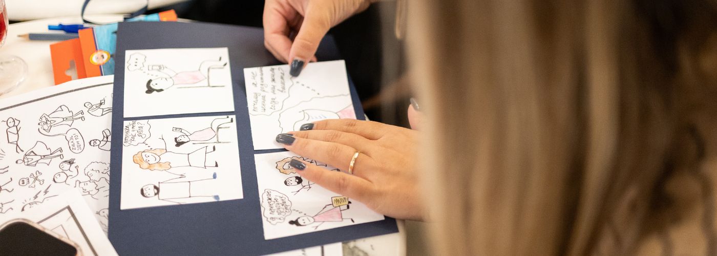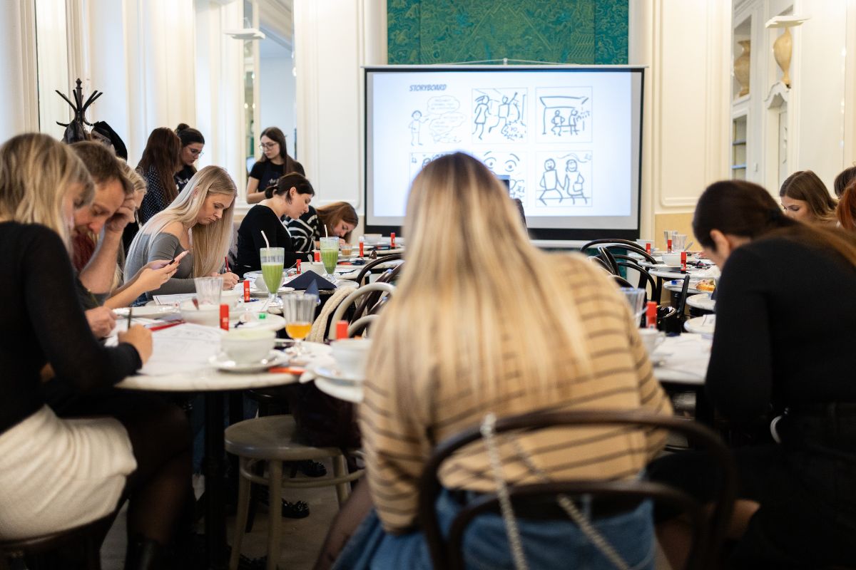 - Sepíšete stručný scénář, načrtnete storyboard a pod vedením lektorky přenesete příběh na finální papír.