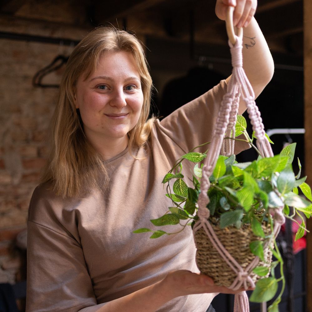 Společně vytvoříte praktický a vizuálně krásný macramé závěs na květiny, který rozzáří každý kout vašeho domova, kanceláře nebo terasy. Stačí ho zavěsit na garnýž, do pergoly nebo na obyčejný hřebík. Pod vedením zkušené lektorky zvládne tvoření opravdu každý – a pokud se necháte unést vlastní kreativitou, můžete natrénované uzlíky nakombinovat úplně podle sebe.