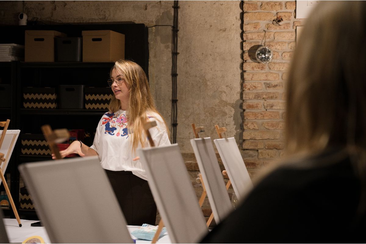 Tento večer není o dokonalosti, ale o přítomnosti. Uvolníte se, vypnete hlavu a necháte hudbu vést vaše ruce. Každý účastník tvoří po svém – někdo maluje abstraktně, jiný se nechává vést vedením lektorky. Cílem je zažít proces, ne výsledek – a právě v tom spočívá jeho kouzlo.