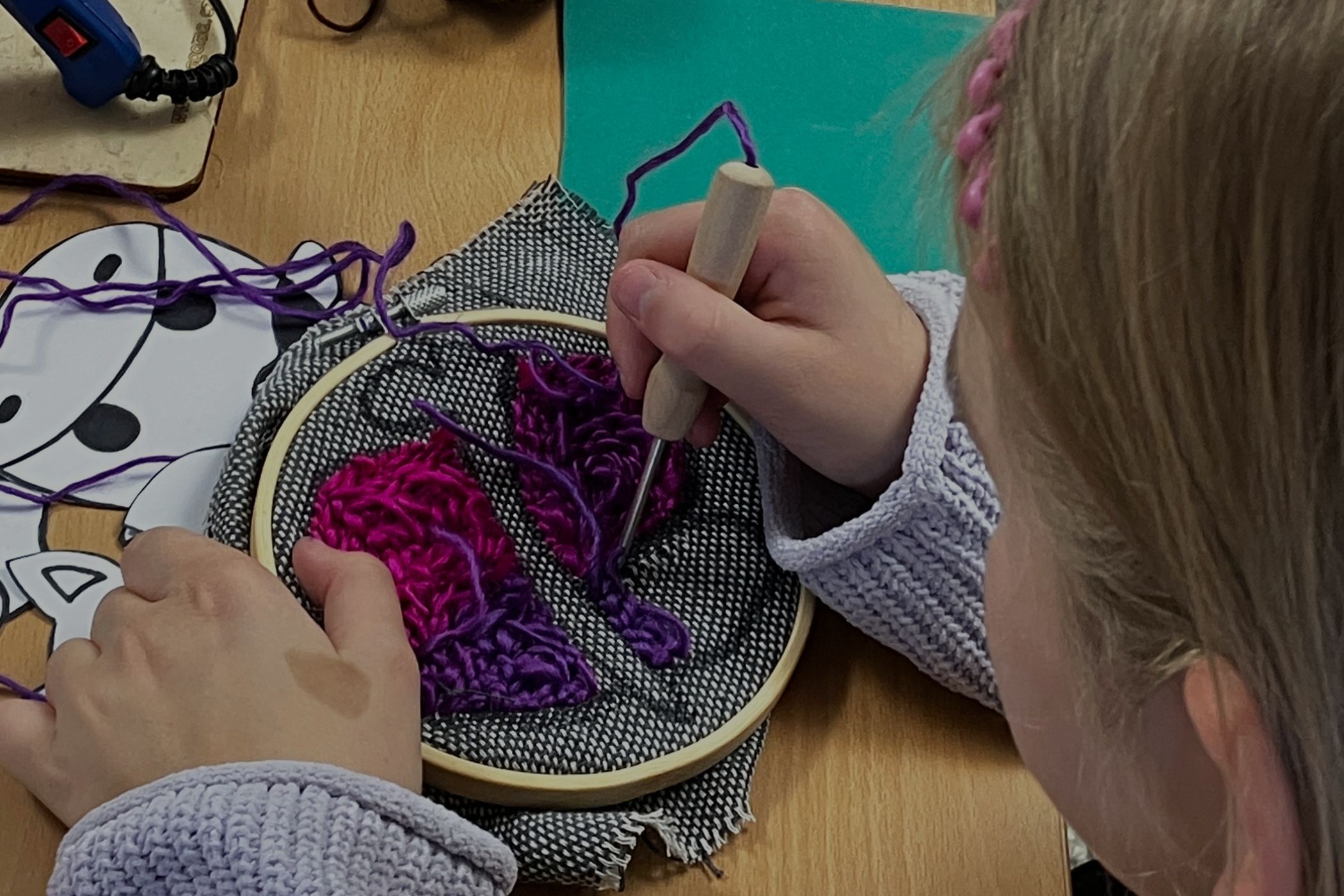 - Seznámíte se s technikou punch needle a prací s plátnem a rámem.
